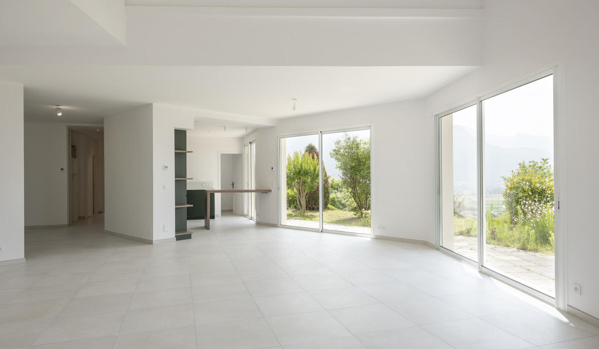 SAINT-JEAN-DE-MOIRANS, secteur Des Marques, Maison refaite à neuf d’une surface de 236 m², elle se compose d’un salon séjour de 50 m² ouvert sur une cuisine neuve et équipée de 14 m², avec accès direct au jardin paysager et à sa piscine.