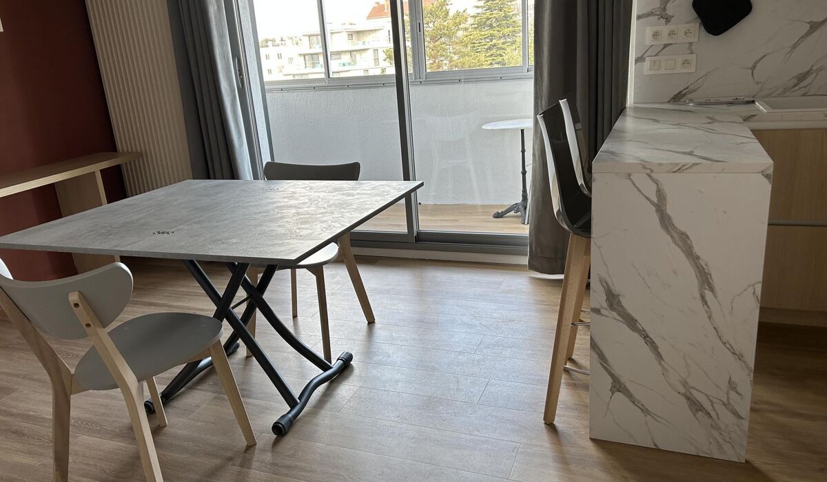 GRENOBLE, Copropriété l'Elysée, Résidence de Standing, Appartement Meublé 1 Pièce cuisine au 4ème étage d'une surface de 26 m². Pièce de vie de plus de 18m² donnant sur grand balcon de 9.95 m², Salle d'eau, Garage en sous-sol. Chauffage collectif, Eau froide et Eau chaude collectives. DPE Cat. D Montant estimé des dépenses d'énergie pour un usage standard : entre 430 € et 620 €/an (prix moyens des énergies indexés au 01.01.2021 abonnements compris). Loyer 660 € + 90 € charges - Caution 660 €/ Honoraires 338 € (dont 78 € EDL). Logement non concerné par l"encadrement des loyers.